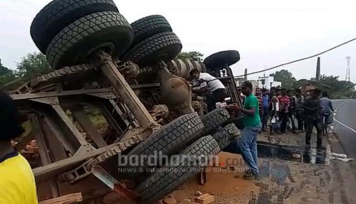 জানা গেছে, শুক্রবার সকালে প্রেট্রোলিয়াম বোঝাই ট্যাঙ্কারটি পিচের গাড়ির পিছনে ধাক্কা মারার পরই নিয়ন্ত্রণ হারিয়ে জাতীয় সড়কের পাশে নয়নজুলিতে নেমে যায়। দুর্ঘনার খবর পেয়ে বর্ধমান থানার পুলিশ ও দমকলের একটি ইঞ্জিন যায় বেচারহাটের দুর্ঘটনাস্থলে। ততক্ষণে গরম পিচ রাস্তায় ছাড়িয়ে নয়নজুলিতে নেমে গেছে। জলের স্রোতের মত গরম পিচ নয়নজুলি দিয়ে বয়ে যাচ্ছে। দুর্ঘনায় জখম হয়েছেন পেট্রোলিয়াম বোঝাই ট্যাঙ্কারের চালক। স্থানীয় বাসিন্দারা জানান, দুর্গাপুরমুখী পিচের ট্যাঙ্কারটি হঠাৎ থেমে যেতেই পিছনে সজোরে ধাক্কা মারে পেট্রোলিয়াম বোঝাই ট্যাঙ্কারটি। ঘটনায় উল্টে যায় গরম পিচ বোঝাই ট্যাঙ্কারটি। প্রায় ঘন্টা দেড়েক পর দুর্গাপুরমুখী লেনে যান চলাচল শুরু হয়।
