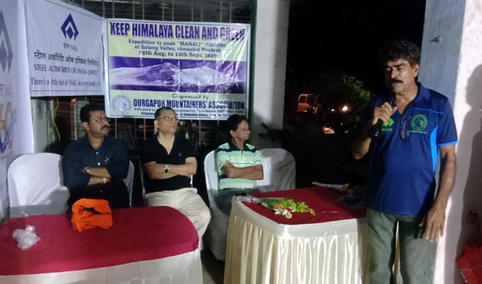 জানা গেছে, দুর্গাপুর মাউন্টেনিয়ার্স অ্যাসোসিয়েশনের সাত সদস্যের এই দলটি রবিবার সন্ধ্যায় হিমাচল প্রদেশের সোলাং ভ্যালির উদ্দেশ্য রওনা হয়েছেন। ২৫ আগস্ট থেকে ১০ সেপ্টেম্বর পর্যন্ত সোলাং ভ্যালির বিসকুন্ডে তৈরি বেস ক্যাম্প সহ তার উপরের ট্রেক রুটে স্বচ্ছ ভারত মিশনের অঙ্গ হিসেবে সাফাই অভিযান চালানোর সঙ্গে সঙ্গে পর্বতারোহণ নিয়ে একটি প্রশিক্ষণ কর্মশালাতেও অংশ নেবেন তাঁরা। ক্যাম্প সম্পন্ন হলে ফের তাঁরা দুর্গাপুরে ফিরবেন। অভিযানে রওনা হওয়ার আগে রবিবার সন্ধ্যায় দুর্গাপুর মাউন্টেনিয়ার্স অ্যাসোসিয়েশনের পক্ষ থেকে তাঁদের সম্বর্ধনা দেওয়া হয়। পাশাপাশি স্থানীয় কাউন্সিলর রাজীব ঘোষ ও ডিএসপি কর্তৃপক্ষের পক্ষ থেকেও রবিবার যাত্রা শুরুর আগে সদস্যদের সম্বর্ধনা দেওয়া হয়। এই অভিযানের সদস্যরা হলেন কালীসাধন ঘটক, সাগরময় চৌধুরী, শুভাশীষ ভট্টাচার্য্য, অমিত দাসগুপ্ত, প্রদীপ কুমার মন্ডল, অচিন্ত্য রায় ও আশীষ ঠাকুর।