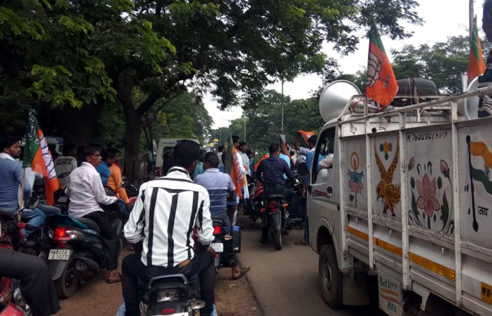 বুধবার ১২ ঘন্টা বাংলা বনধের সমর্থনে বর্ধমান শহরে মিছিল করল বিজেপি। দলীয় কার্যালয় ঘোড়দৌড় চটি থেকে মিছিল শুরু হয়ে শেষ হয় কার্জনগেট চত্বরে। মিছিলে নেতৃত্ব দেন জেলা সভাপতি সন্দীপ নন্দী। বন্ধের সমর্থনে মঙ্গলবার কুলটিতে বিজেপির পক্ষ থেকে এক পথসভার আয়োজন করা হয়।