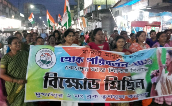 আসানসোলে বনধ বিরোধী মিছিল করল তৃণমূল কংগ্রেস। আসানসোল বিএনআর মোড় থেকে কোর্ট মোড় পর্যন্ত এই মিছিল যায়। মিছিলের নেতৃত্ব দেন অভিজিত ঘটক, বিশ্বরুপ রায়, গুরুদাস চট্টোপাধ্যায় সহ অন্যান্য নেতারা। বুধবার বিজেপির ডাকা বন্ধে জনজীবন স্বাভাবিক রাখার আহ্বান জানানো হয় মিছিল থেকে।