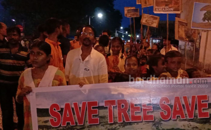 দুর্গাপুরের রাজবাঁধের প্রকৃতিপ্রেমী মানুষজনও গাছ লাগান প্রাণ বাঁচান এবং আমাজন বাঁচানোর আর্জি নিয়ে পথে নামলেন। বুধবার সন্ধ্যায় ‘সেভ ট্রি সেভ লাইফ’ শ্লোগানকে হাতিয়ার করে রাজবাঁধ থেকে রাজবাঁধের গ্রাম ঘুরে মিছিল শেষ হয়। অগণিত মানুষ এই প্রকৃতি ও পরিবেশ বাঁচানোর আর্জির মিছিলে অংশ নেন। মিছিলের নেতৃত্বে ছিলেন পরিবেশপ্রেমী কৌশিক পাঁজা। তিনি বলেন, ‘পরিবেশ রক্ষায় সবুজায়ন প্রয়োজন। গাছ না লাগালে প্রাণ বাঁচানো সম্ভব নয়। পৃথিবীর ফুসফুস আমাজন আজ পুড়ে যাচ্ছে। আমাজন বাঁচানোর আর্জির পাশাপাশি আমরা আমাদের দেশের প্রতিটি মানুষের কাছে গাছ লাগানোর আবেদন জানাচ্ছি। কারণ গাছ না লাগালে প্রাণ বাঁচানো সম্ভব নয়।’