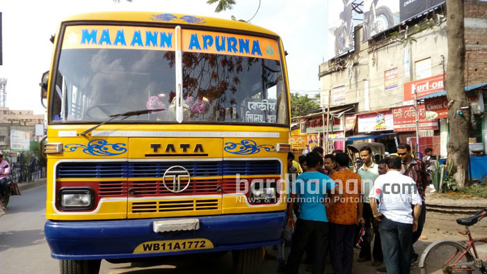শনিবার স্কুল ছুটির পর পড়ুয়ারা বাড়ি ফেরার পথে দুর্ঘটনার কবলে পড়ে কেন্দ্রীয় বিদ্যালয়ের বাসটি। বর্ধমান শহরের পার্কাস রোড মোড়ে এক সাইকেল আরোহী মহিলাকে বাসটি ধাক্কা দিলে ওই মহিলা গুরুতর চোট পান। আহত মহিলাকে বর্ধমান হাসপাতালে ভর্তি করার পাশাপাশি স্থানীয়রা বাসের চালক ও খালাসীকে আটক করে পুলিশের হাতে তুলে দেন। দুর্ঘটনায় বাসের মধ্যে থাকা পড়ুয়ারা কেউ আঘাত পায় নি বলে জানা গেছে। স্থানীয় বাসিন্দারা পড়ুয়াদের বাস থেকে নামিয়ে তাদের বাড়িতে ফোন করে খবর দিয়ে দেন। অবিভাবকরা এসে ছেলে-মেয়েদের বাড়ি নিয়ে যান।